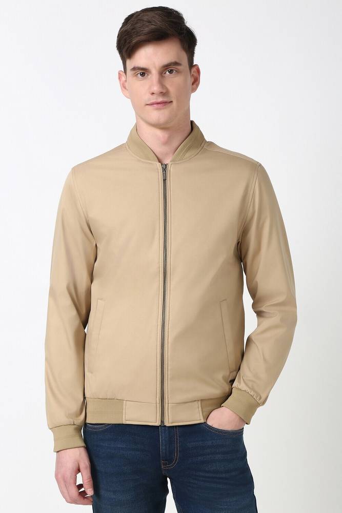 Give a smart update to your style with this Beige jacket from Peter England Casuals by Peter England.