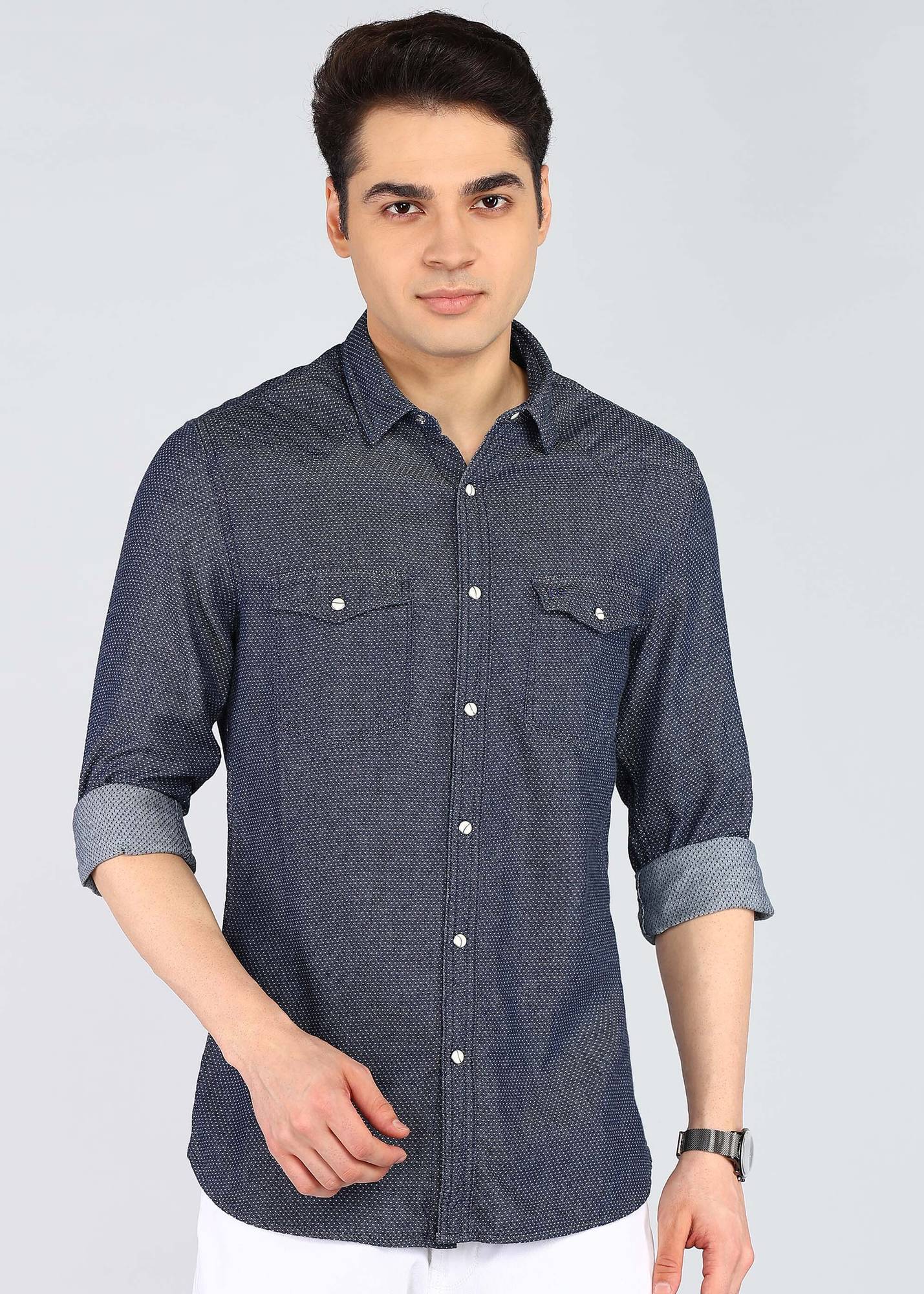 PETER ENGLAND Men Checkered Casual Blue Shirt