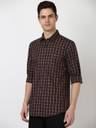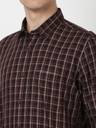 This Brown Check Casual shirt from Peter England Casuals is tailored in Slim Fit. Crafted in 100% Cotton features a Regular Collar and Full Sleeves .