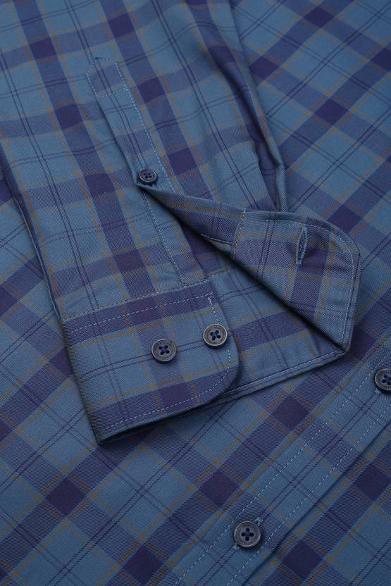 PETER ENGLAND Men Checkered Casual Blue Shirt