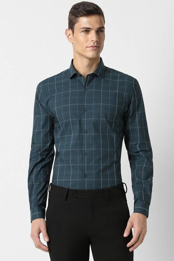 A well fitted formal shirt always makes you look sharp. Crafted in 71% Cotton, 25% Nylon and 4% Spandex , this Green Check Formal Full Sleeves shirt from Peter England Perform features a Regular Collar and is tailored in Super Slim Fit.