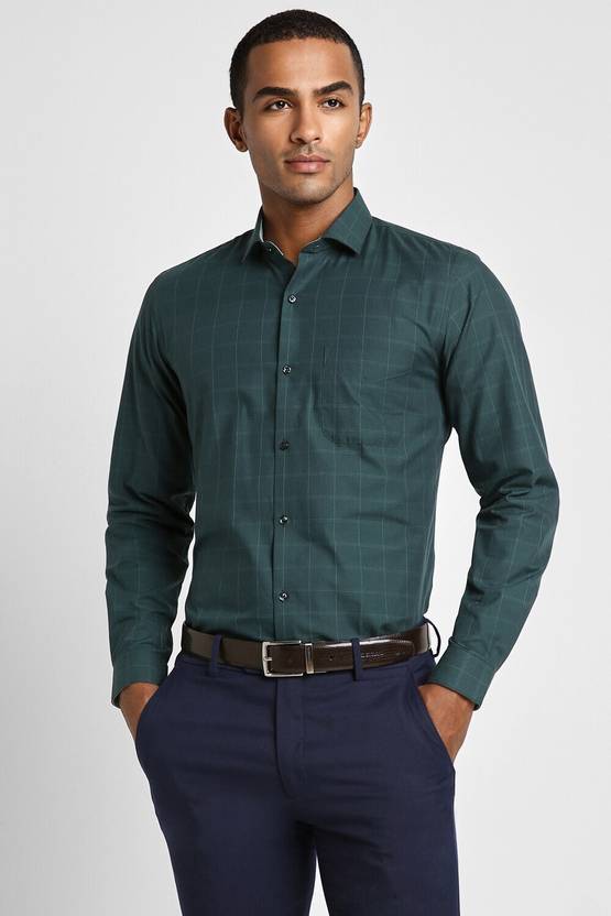 PETER ENGLAND Men Checkered Formal Green Shirt