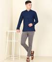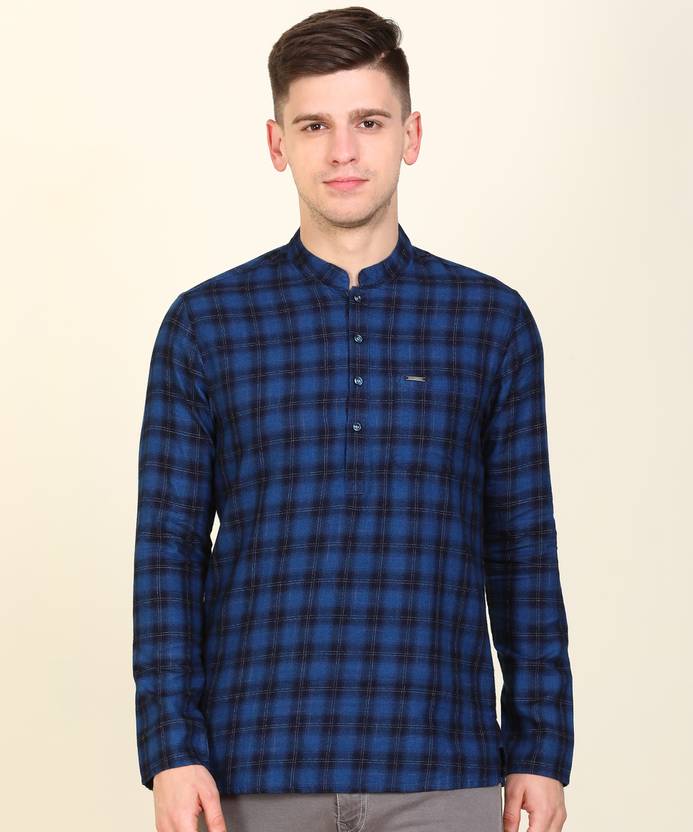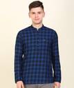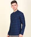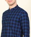 PETER ENGLAND Men Checkered Straight Kurta (Dark Blue)