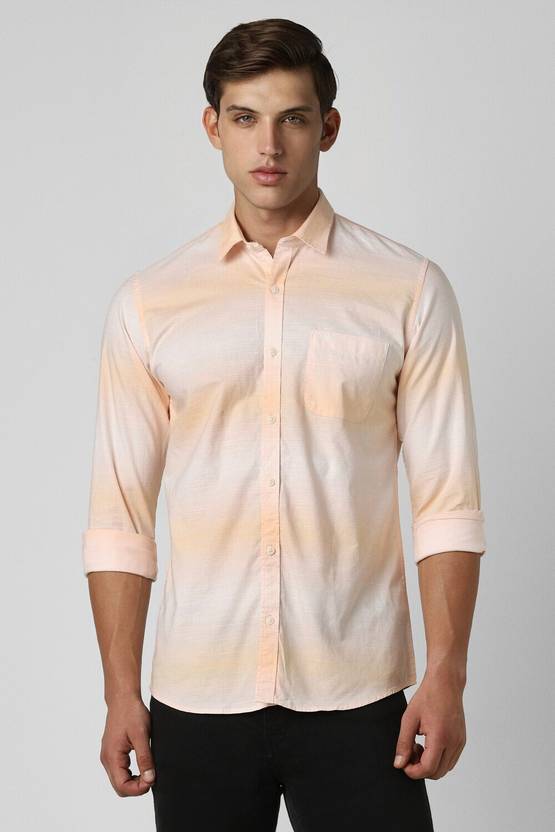 PETER ENGLAND Men Striped Casual Orange Shirt