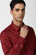 PETER ENGLAND Men Printed Formal Maroon Shirt