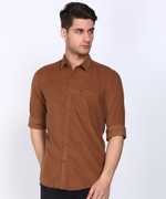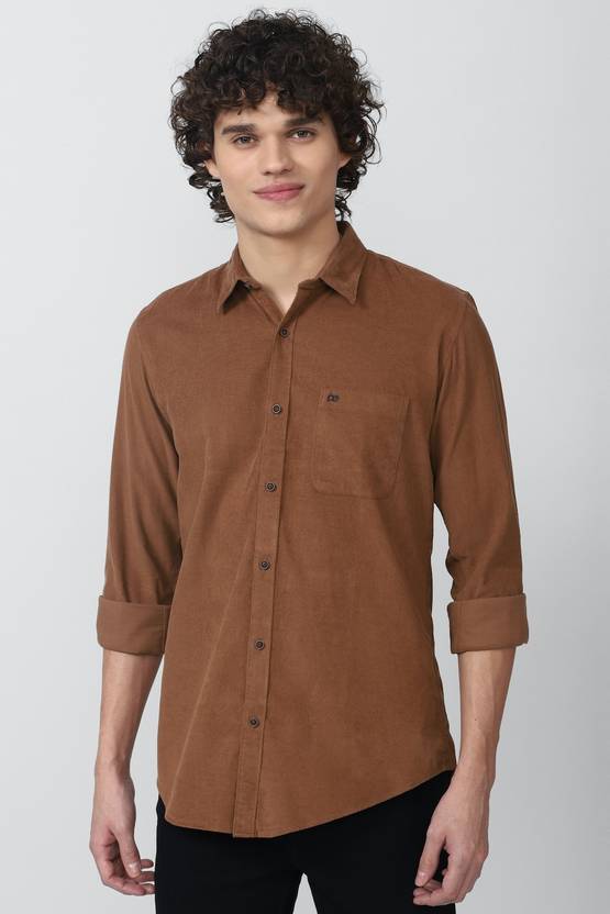 Crafted in 100% Cotton , this Brown Solid Casual Full Sleeves shirt from Peter England Casuals features a Regular Collar and is tailored in Slim Fit.