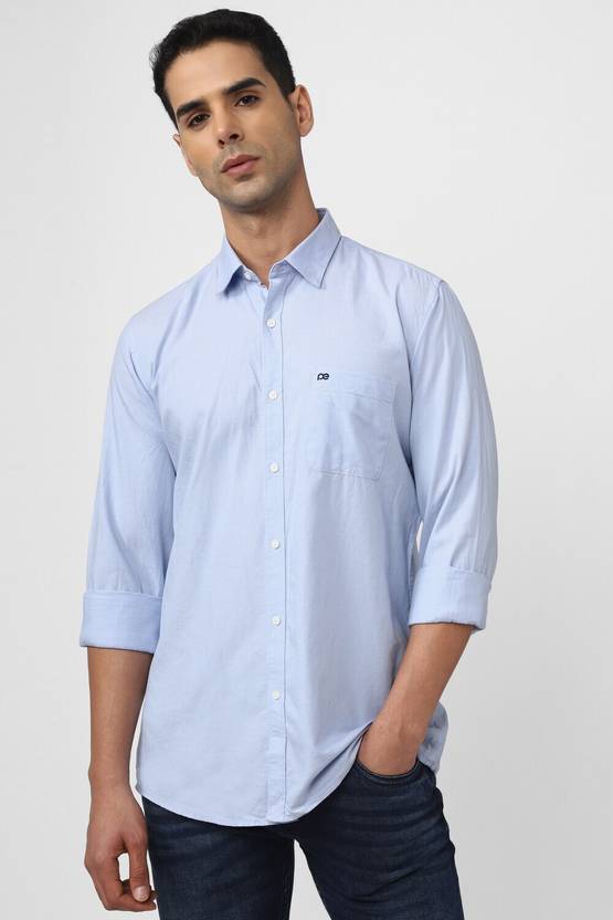 PETER ENGLAND Men Self Design Casual Light Blue Shirt