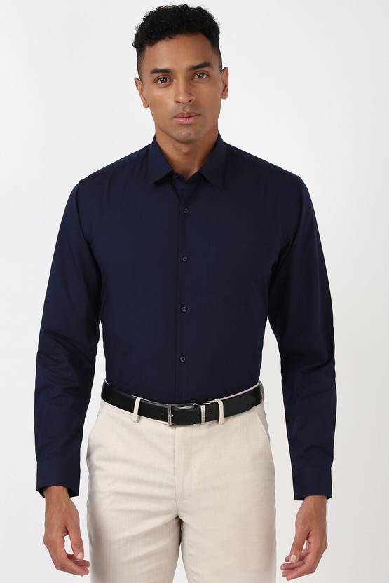 This Navy Textured Formal shirt from Peter England is tailored in Slim Fit. Crafted in 60% Cotton and 40% Polyester features a Regular Collar and Full Sleeves .
