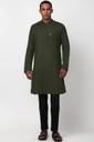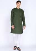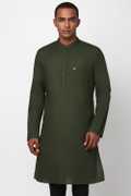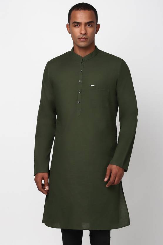 Look sharp and suave even in formal occasions with Peter Englands mens olive kurta made from top-quality cotton material. The slim and textured design elevate your style without sacrificing comfort. Designed to perfectly fit the occasion, this kurta will surely make you feel confident and well-put-together. Add to your wardrobe this must-have staple that never goes out of fashion. Stand out and impress with its captivating blend of simplicity and elegance.