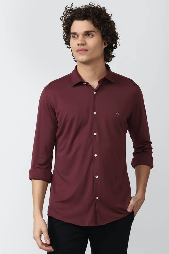 PETER ENGLAND Men Solid Casual Maroon Shirt