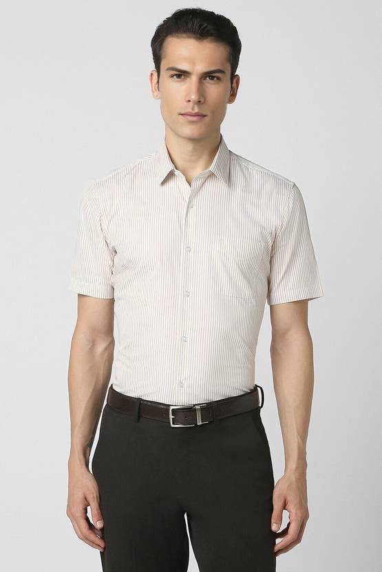 PETER ENGLAND Men Striped Formal Beige, White Shirt