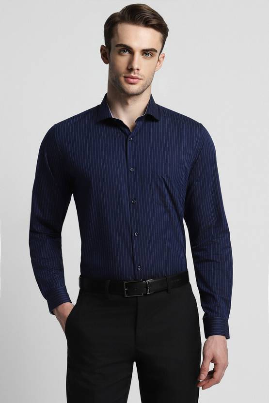 PETER ENGLAND Men Striped Formal Dark Blue Shirt
