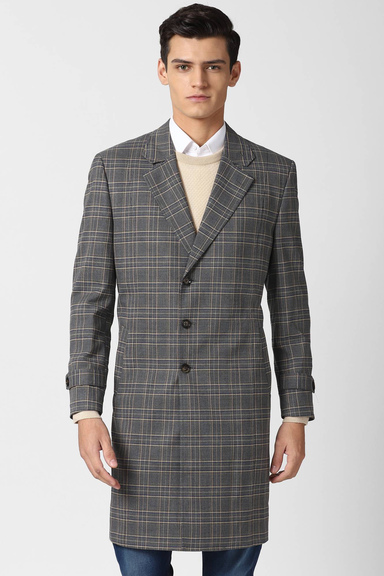 PETER ENGLAND Polyester Viscose Blend Checkered Coat
