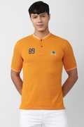 PETER ENGLAND Printed Men Mandarin Collar Orange T-Shirt