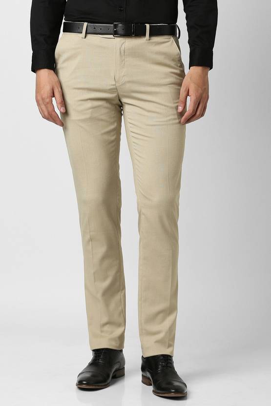 Introducing the Peter England formal trousers in a sophisticated beige hue, expertly crafted from a blend of polyester, viscose, and spandex. These textured trousers offer a tailored fit that enhances both comfort and elegance, making them ideal for formal occasions. The exquisite fabric ensures breathability and flexibility, providing a refined look without compromising on comfort. Elevate your formal wardrobe with this must-have addition.