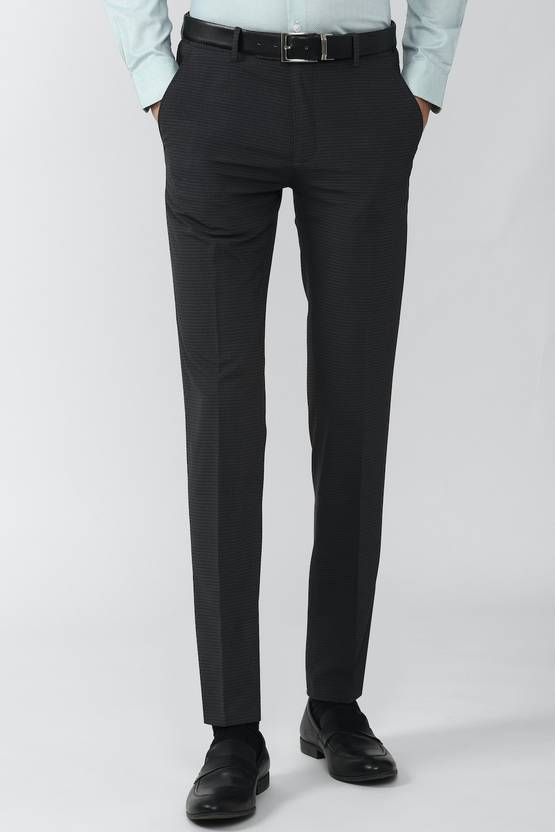 Well cut trousers are a mainstay of sharp dressing. Take a step in the right direction with this Black Solid formal trousers, tailored in Slim Fit from Peter England by Peter England.