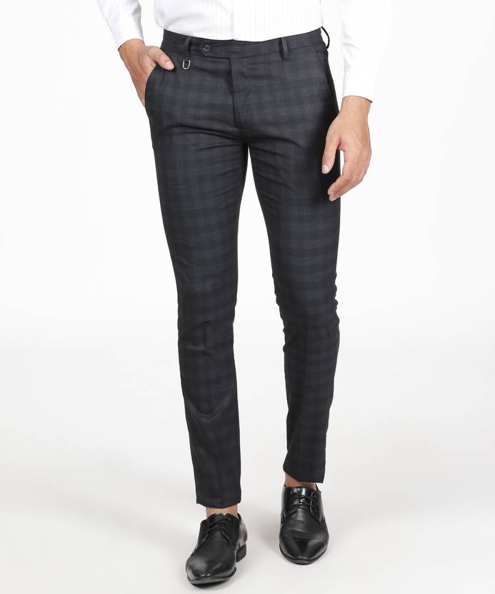 PETER ENGLAND Slim Fit Men Dark Blue, Grey Trousers