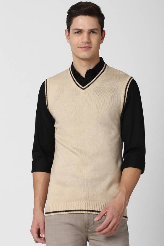 PETER ENGLAND Solid Crew Neck Casual Men Beige Sweater