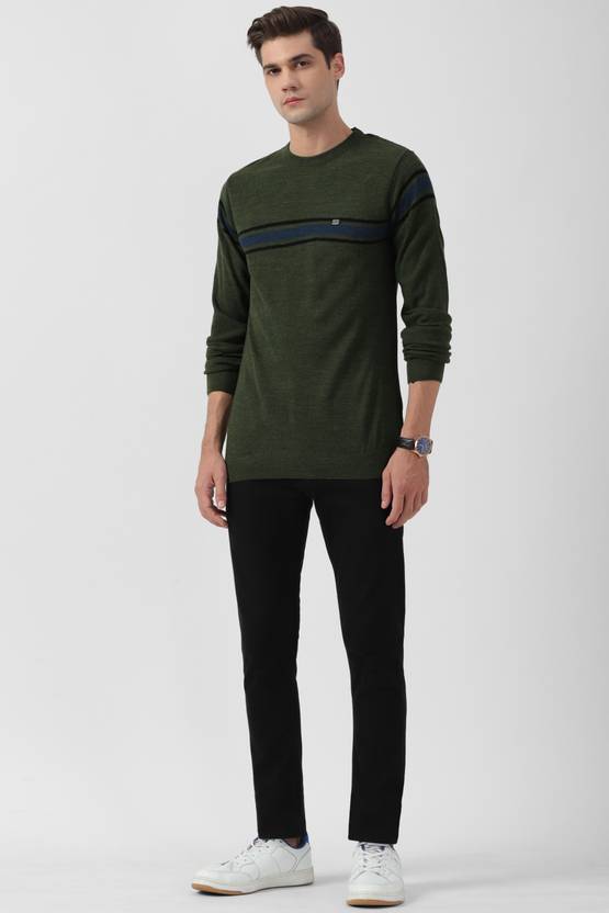 PETER ENGLAND Solid Crew Neck Casual Men Green Sweater