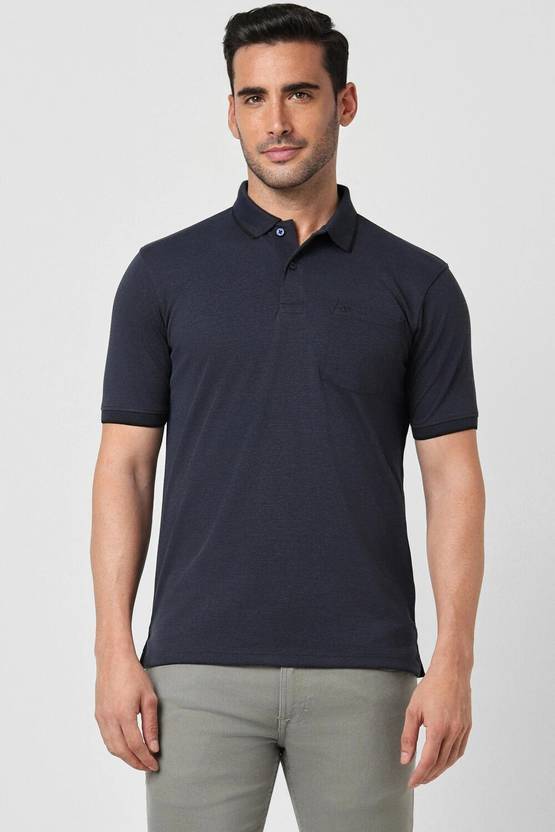 PETER ENGLAND Solid Men Polo Neck Dark Blue T-Shirt