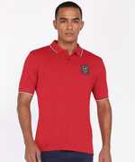 PETER ENGLAND Solid Men Polo Neck Dark Blue T-Shirt