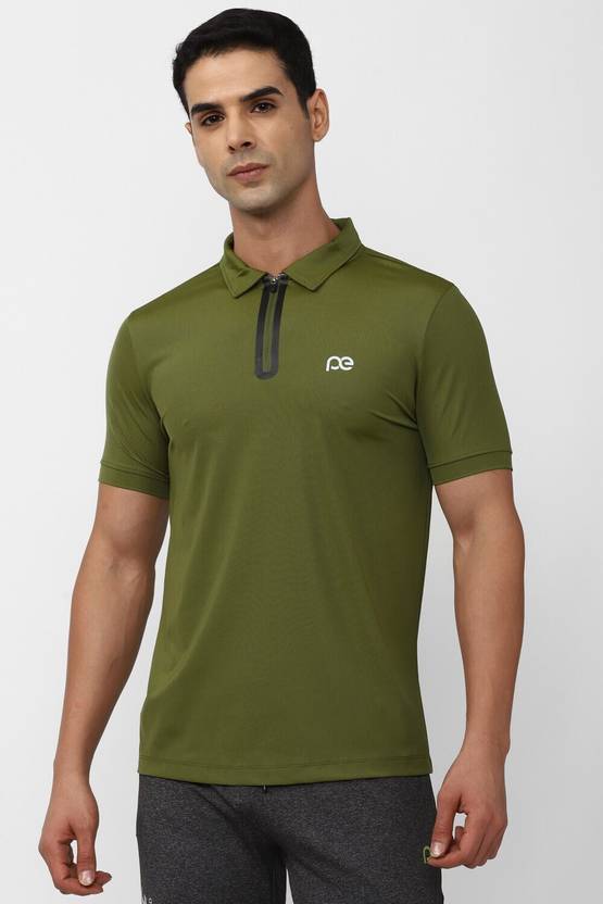 PETER ENGLAND Men Solid Polo Neck Nylon Green T-Shirt
