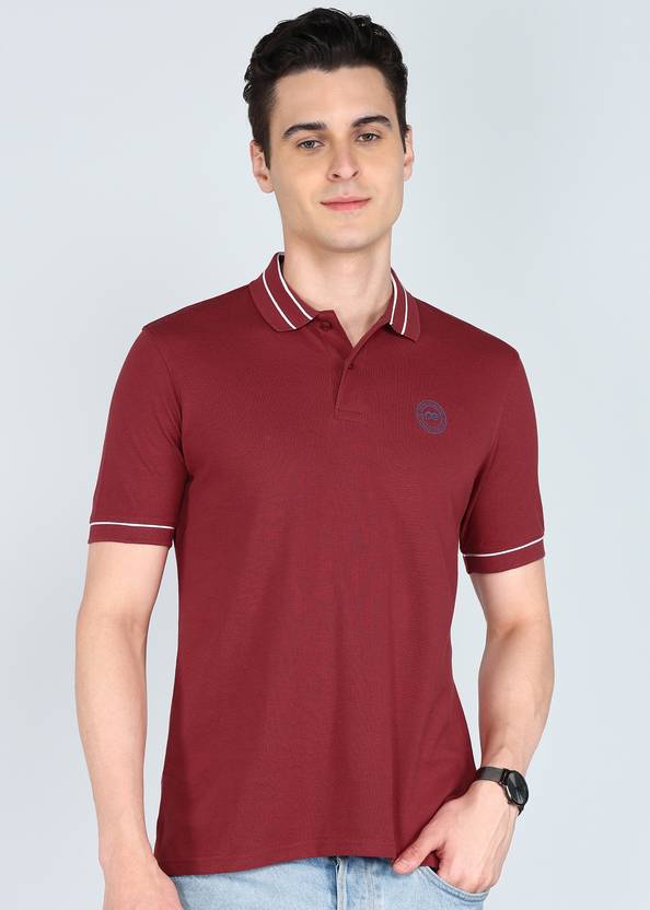 PETER ENGLAND Solid Men Polo Neck Maroon T-Shirt