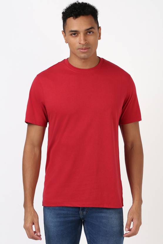 PETER ENGLAND Solid Men Round Neck Red T-Shirt