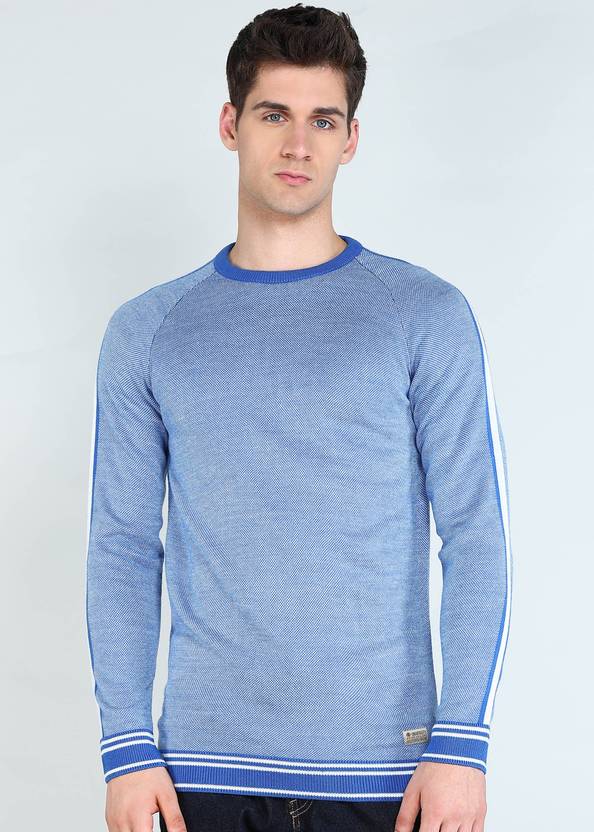 PETER ENGLAND Solid Round Neck Casual Men Blue Sweater