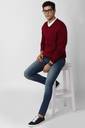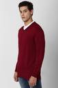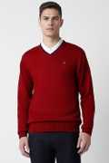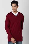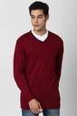 PETER ENGLAND Solid, Self Design Crew Neck Casual Men Maroon Sweater