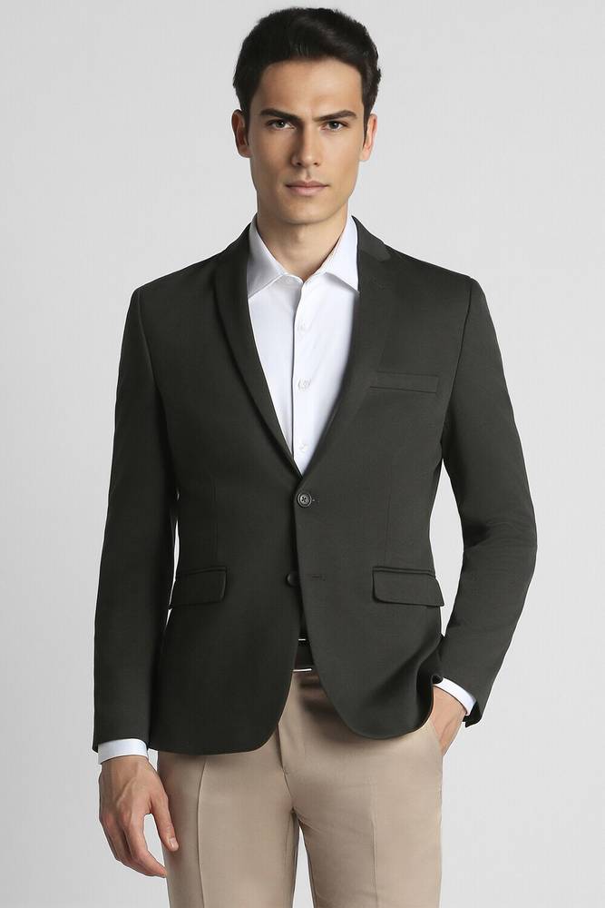 PETER ENGLAND Solid Single Breasted Formal Men Blazer (Black)