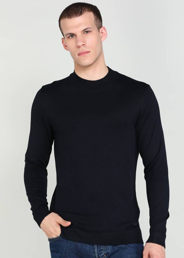 PETER ENGLAND Solid Turtle Neck Casual Men Blue Sweater