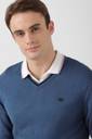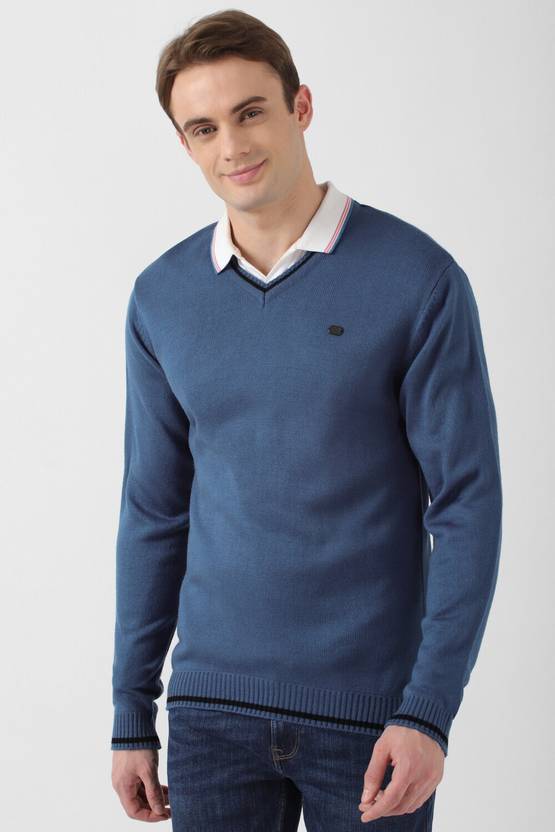 PETER ENGLAND Solid V Neck Casual Men Blue Sweater