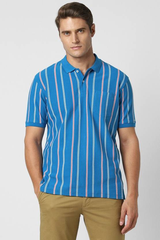 PETER ENGLAND Striped Men Polo Neck Blue T-Shirt
