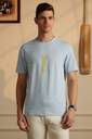 Men Striped Round Neck Pure Cotton Blue T-Shirt
