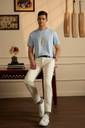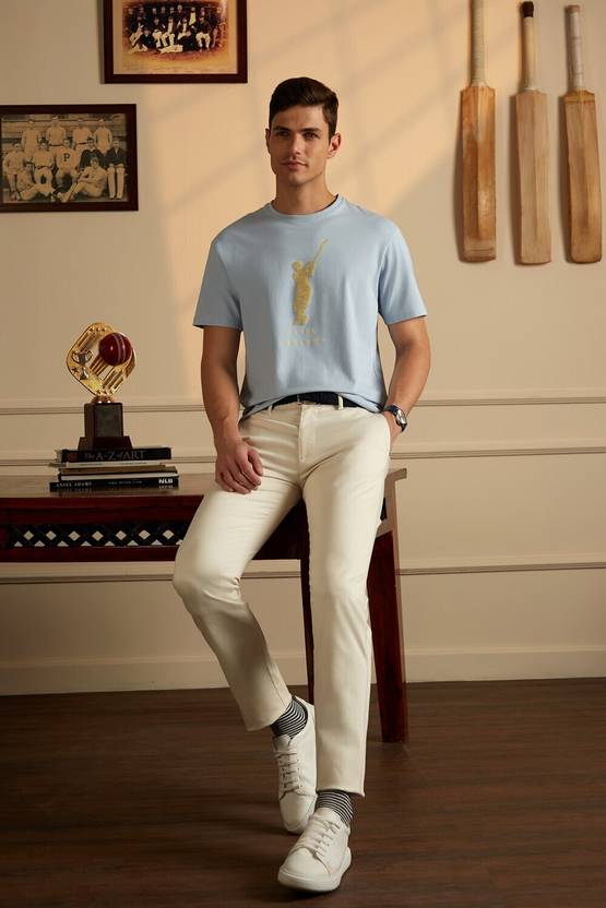This Blue Crew Neck Half Sleeves T-shirt from Peter England Casuals is made from 100% Cotton. Fashioned in Regular Fit it features a Solid design.