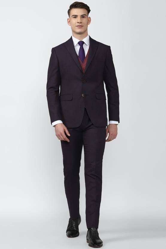 Exquisitely cut in a Slim Fit , this Purple Textured three piece suit from Peter England Elite by Peter England is a smart investment for your style repertoire.