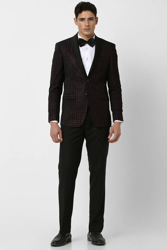 Exquisitely cut in a Slim Fit , this Black Embroidered two piece suit from Peter England Elite by Peter England is multi faceted in its appeal.