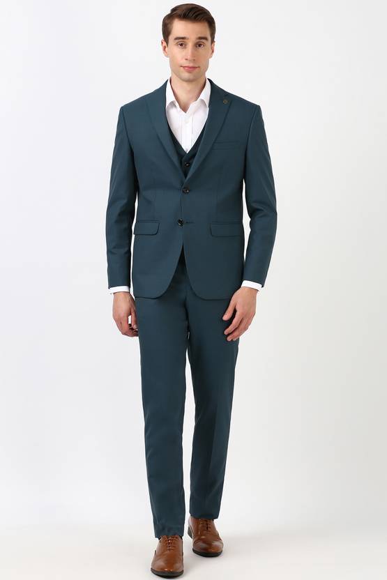 Exquisitely cut in a Slim Fit , this Green Textured three piece suit from Peter England Elite by Peter England is a smart investment for your style repertoire.