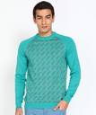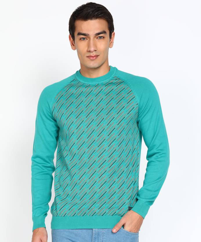PETER ENGLAND Woven Round Neck Casual Men Blue Sweater