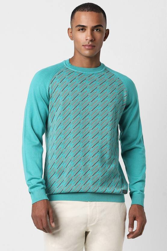 PETER ENGLAND Woven Round Neck Casual Men Blue Sweater