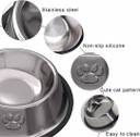 Petfun Stainless Steel PAW Printed Dog Anti Skid Food Water Feeding Bowl Stainless Steel Pet Bowl (900 ml Silver)
