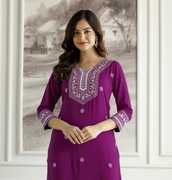 Beautiful floral embroidery shines out even more against the kurta's solid colour on this Straight kurta from Chehar Fab. Its attractiveness is enhanced by the matching artistry on the snug 3/4-length sleeves and the exquisitely detailed work on the neck area