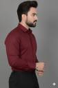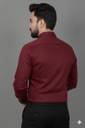 This is a men's plain white full-sleeved shirt featuring a classic collar and contrasting black buttons. The shirt is crafted from a smooth fabric with a subtle sheen, offering a refined and modern aesthetic. It has a tailored fit that contours to the body, and the cuffs are secured with buttons. This versatile shirt is suitable for formal and semi-formal occasions.
