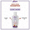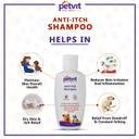 Petvit Anti-Itch Shampoo is an antimicrobial, antifungal moisturizing shampoo. Natural active ingredients help soothe the coat and skin, reduce skin irritation and inflammation while repelling parasites and other insects from your Pet’s. It nourishes and hydrates their coat as well. Our pet care Anti Itch Shampoo is designed and formulated with the help of veteran for affordable, effective, and safe solution for your pet Petvit Anti-Itch Shampoo comes with a defence formula that keeps the Relief for Itching from your dog’s coat. It provides a purifying experience to your doggy and makes it feel soft & good. This all-in-one formula makes bath time easy for you and your dog while leaving your dog's coat clean, silky and smooth. Petvit best smelling dog shampoo is pH Balanced, Toxin Free, Vegan, Pet Friendly and Eco Friendly effective and safe enough for routine pet baths for dogs, puppies, cats 16 weeks or older. ? Reduces Skin Irritation and Inflammation ? Maintain Skin Overall Health ? Dry Skin & Itch Relief ? Relief from Dandruff & Constant Itching [Specification] ? Form: Shampoo ? Ideal for: Dogs & Cats ? Skin Type: All Skin Type ? Application Area: Full Body ? Goodness: pH Balanced, Toxin Free, Vegan, Pet Friendly and Eco Friendly Ingredients: Tea Tree oil, Lemongrass oil, Shampoo Base [Suggested Use] FOR ALL BREED DOGS AND CATS: Step 1: Cleanse your pet thoroughly with warm water Step 2: Massage the shampoo deep into the coat and obtain good lather Step 3: Let it stay for 2-3 minutes and then rinse properly Step 4: Rinse water on your pet and make sure Shampoo remove from your pet’s Skin Step 5: And give some time to Dry