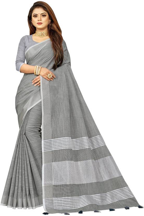 Woven Bollywood Cotton Linen Saree (Grey)