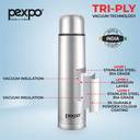 pexpo 1000 ml Steel Flask (Pack of 1, Silver)