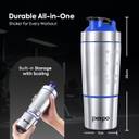 The Pexpo Kinetic Stainless Steel Gym Shaker is designed to provide both convenience and reliability for anyone leading an active lifestyle. Made from high-quality, food-grade stainless steel, this 700ml shaker is built to withstand the rigors of daily use. Ideal for mixing protein shakes, pre-workouts, smoothies, or any of your favorite beverages, the Pexpo shaker is designed to make your fitness routine easier and more efficient. One standout feature is its detachable 180ml extra compartment, which offers extra space for storing supplements, powder, or other essentials. This compartment makes it easier to keep everything you need in one place, eliminating the need to carry multiple containers or bags. The extra compartment easily attaches to the bottom of the shaker and can be removed for cleaning or refilling whenever needed, providing more flexibility for your on-the-go needs. In addition to its practical design, the Pexpo Kinetic shaker is equipped with a spring ball for blending, ensuring smooth and efficient mixing. The spring ball helps to break up clumps and evenly mix your drinks, allowing you to create perfectly blended beverages every time. The shaker is also made from BPA-free materials, ensuring that you can enjoy your drinks without worrying about harmful chemicals leaching into your beverage. Additionally, the shaker features a leakproof lid, designed to minimize spills and prevent any mess in your gym bag, backpack, or car. Whether you're running errands, heading to the gym, or out for a hike, you can confidently carry your shaker without the fear of leakage. The Pexpo Kinetic Stainless Steel Gym Shaker combines functionality with style. Its thoughtful features make it a standout choice for anyone looking to streamline their fitness routine while enjoying the convenience of having everything in one compact solution. Whether you're working out, traveling, or just on the go, the Pexpo Kinetic shaker has you covered.