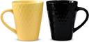pexpo Potterman Diamond Microwave Safe Black and Yellow Milk,Tea cup for Gifting Ceramic Coffee Mug (300 ml, Pack of 2)