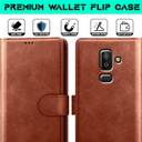 Our Brand Present Premium Flip Cover for SAMSUNG J8 , A flip cover is a type of protective case designed for smartphones It typically consists of two parts a rigid back cover that protects the rear of the device, and a flap or front cover that flips open and closed to protect the screen. The front flap can be used to shield the screen from scratches, dust, and other environmental elements when not in use.flip covers are made from synthetic leather, and can include additional features like cardholders, stands. They often offer easy access to ports, buttons, and cameras, while providing all-around protection for the device.
